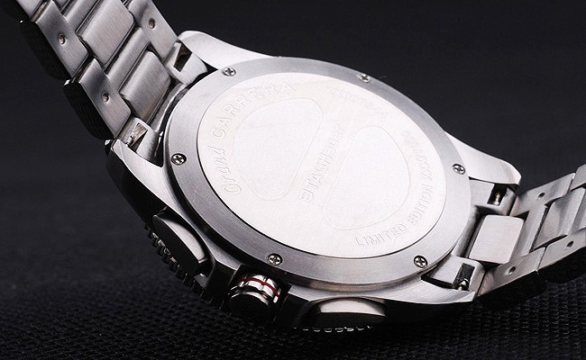 Voltar: Aço inoxidável para baixo capa de volta com tag Gravuras Heuer