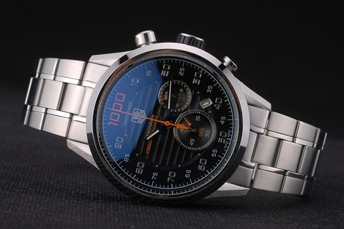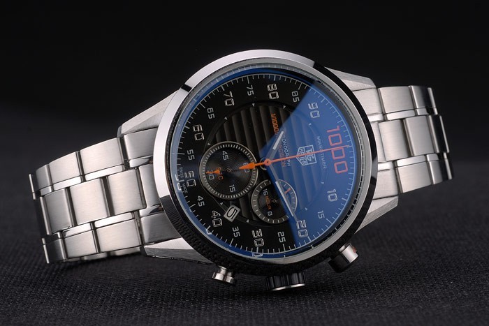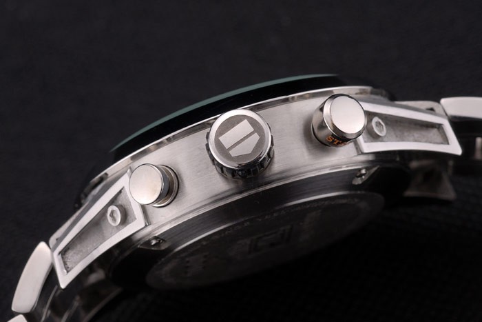 coroa: coroa de aço inoxidável polido com logotipo de heuer de tag e duas coroas de botão redondo em ambos os lados da espessura do caso:Gênero: homens