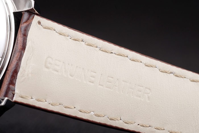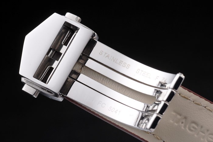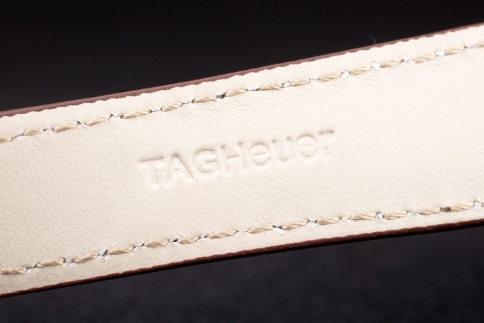 pulseira: tag Heuer calor em relevo cinta de couro de crocodilo marrom escuro com costura branca e escovado de aço inoxidável de aço de liberação de botão de pressão no fecho com tag Heuer gravura
